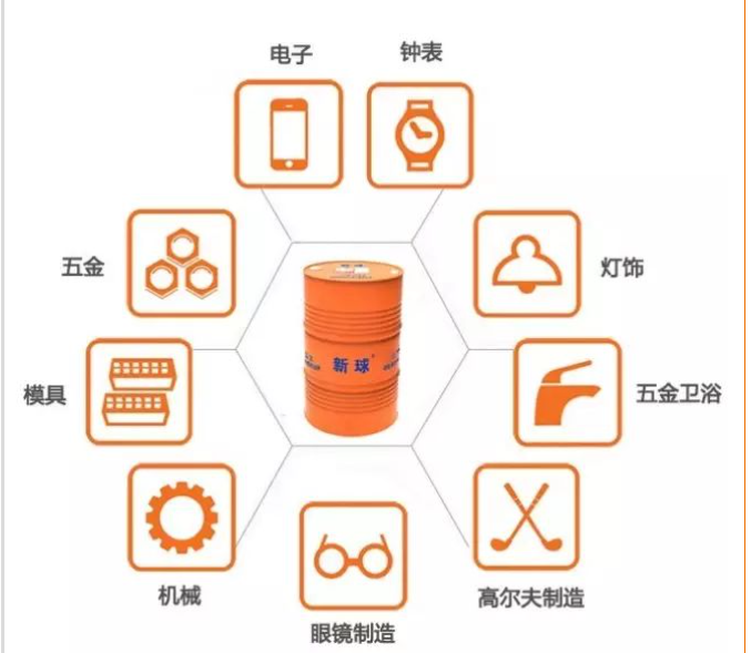 如:切削油、冲压油、润滑油、防锈油、拉伸油、脱模剂、淬火油、回火油、攻牙油、顶针油、传热油、乳化切削油、火花油、研磨油、动植物油、松香、助焊剂、抛光蜡、不干胶等。